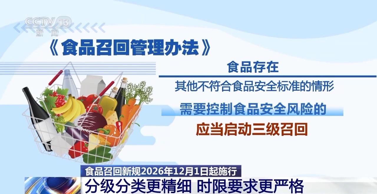 市场监管总局食品生产经营司监管一处处长 陈恩成:综合地方市场监管部门、行业、专家等的意见,以食品安全危害程度、需要实施召回的紧急程度等为依据,明确三级召回情形。